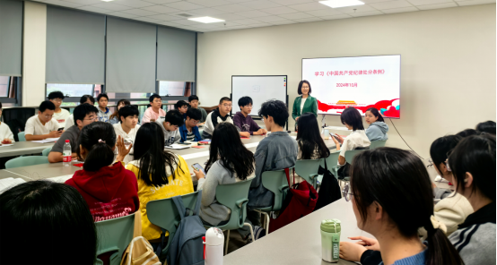 2024年10月24日下午,学院党委书记开展了党规党纪专题党课讲授,重点讲授了《中国共产党章程》和《中国共产党纪律处分条例》。通过党课学习,学院党委希望全体党员做到遵守党规党纪,并学纪、知纪、明纪、守纪,希望学生党员成为讲党性守党规严党纪的时代新人。