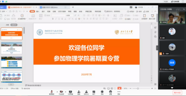 上午八点半,开营仪式正式开始,物理学院执行院长贾焕玉教授为本次夏令营致辞。贾院长介绍了西南交通大学的悠久校史和物理学院的历史沿革及办学特色,也对全体营员给予了殷切希望。随后,研究生教育教学工作分管领导院长助理周涛老师作院情介绍和研究生招生与培养情况介绍,以及本次夏令营日程安排。此外,他还希望营员们能够珍惜本次线上夏令营的机会,积极与老师进行沟通,遵守相关规定,并在本次夏令营中充分展现自己。