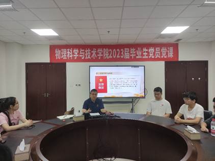 为深入学习贯彻习近平新时代中国特色社会主义思想,进一步加强毕业生教育和党性修养,6月8日上午,物理科学与技术学院党委书记刘玉在犀浦校区30345室为学院2023届毕业生党员讲授了一堂专题党课,引导物理学院学生党员在更广阔天地进一步发挥先锋模范作用。