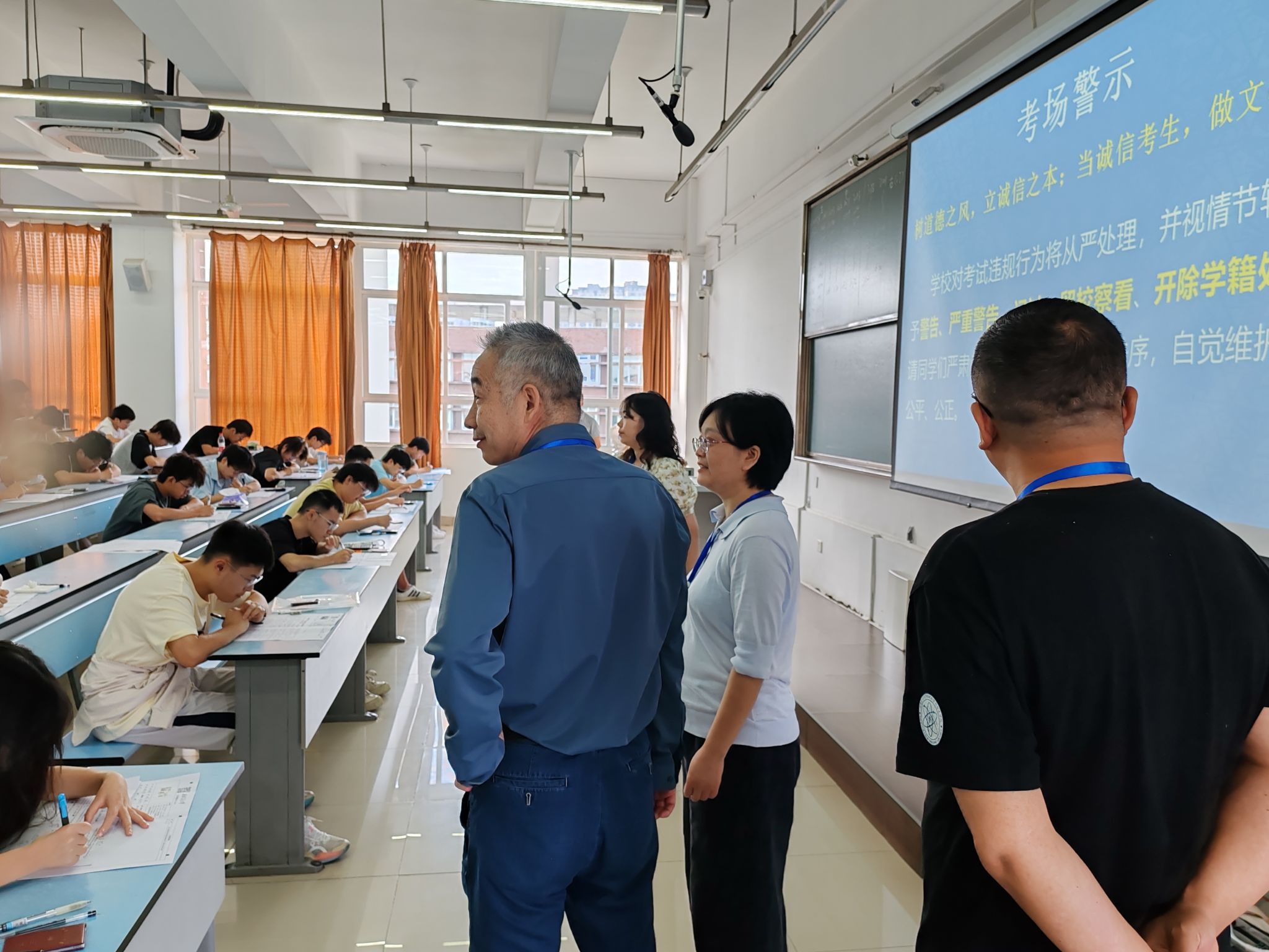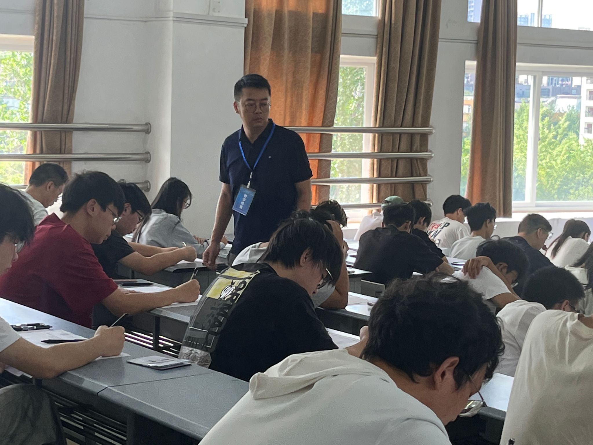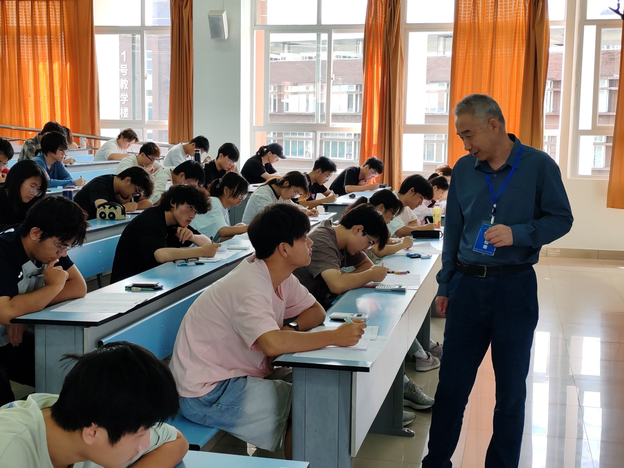 6 25 日,物理科学与技术学院大学物理公共基础课大面上期末考试如期举行,全校分106个考场进行,共5300多名学生参加了本次考试。为严肃考风考纪,确保考试工作平稳有序进行,院长贾焕玉、副书记郭剑、副院长倪宇翔及相关职能部门负责人组成巡考小组,深入各考场开展期末考试巡查工作。