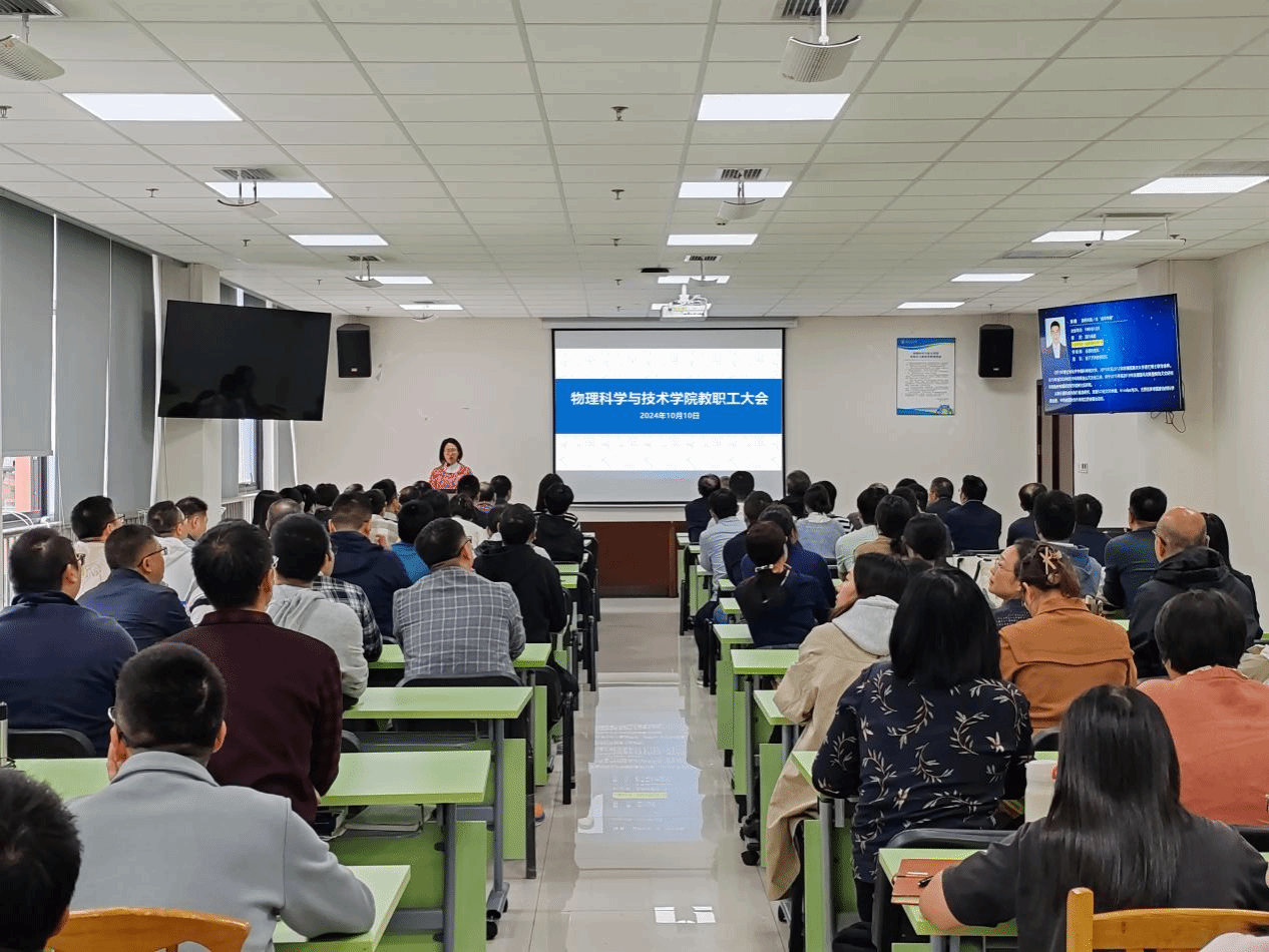 10月10日下午,物理科学与技术学院于X30334会议室召开全院教职工大会。学院党政领导班子成员、全体教职员工出席会议。会议由学院党委书记李卓慧主持。