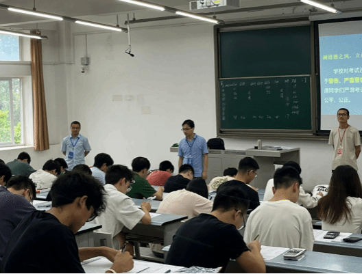 2024年6月28日,物理科学与技术学院大学物理公共基础课《大学物理》(含AI、BI、DI、GI、 MI、JI)期末考试如期举行,全校分96个考场进行,共4893名学生参加本次考试。为端正考风考纪,保证考场秩序,28日上午,学院执行院长贾焕玉、副院长李相强带队深入考场一线,认真检查考场秩序、考风考纪和教师监考情况。