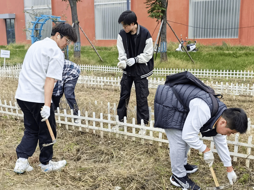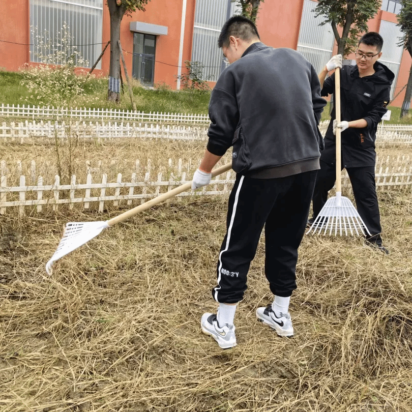 铁锹、铁耙、锄头等各式农具齐上阵,水桶和瓢儿也加入了战斗,物理学院学子们斗志满怀,便是兴致满满地把活干了起来。种植、除草、浇水,他们或有人是第一次踏进这泥土,第一次握住这农具。但这并没什么,他们投入其中,不辞辛劳,以苦为乐。