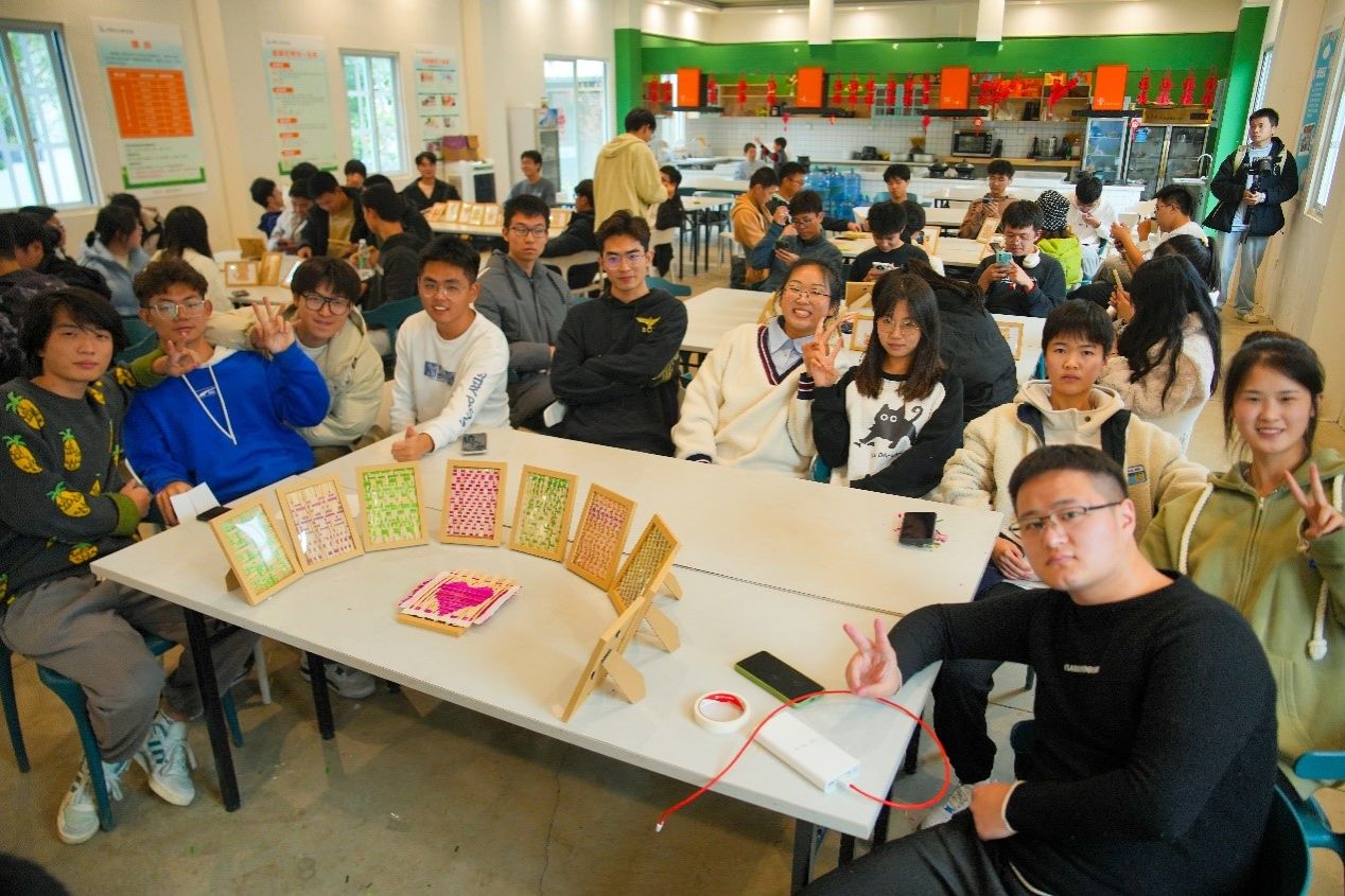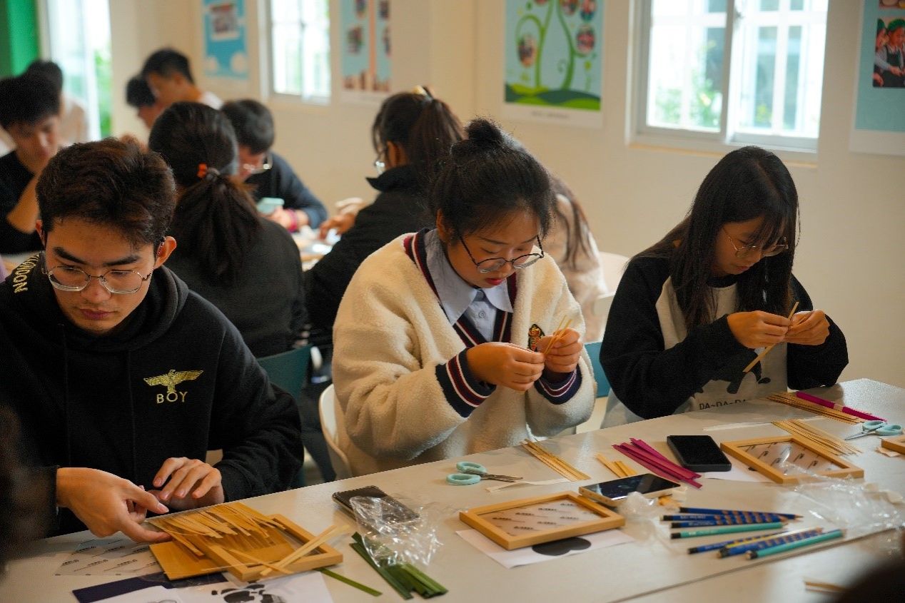 在非遗文化体验室里,同学们为竹编技艺深深吸引。竹编是一门古老而美好的传统技艺,曾经是中国人的生活必需品,现在也是一种文化遗产和生活美学。在此次实践活动中,同学们在老师指导下亲手实践,制作竹编工艺品,“压一挑一”的口诀凝结着前人的智慧结晶,同学们也从开始的不熟练到最后做成了属于自己的专属竹编相框。作为实用与艺术的完美结合,同学们不单单是在做竹编,更是在传承非遗技术,也是在传承那颗宝贵的匠人之心。