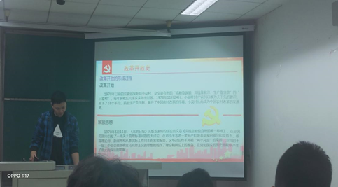 紧接着,黄贵春同志继续讲解改革开放史的有关内容。从安徽小岗县出发,讲述了四十年来的发展历程,同时重点讲解海难经济特区的建立。十一届三中全会提出改革开放是当代中国命运的关键抉择。历史证明,改革开放是解放和发展社会生产力、不断创新充满活力的体制机制的必然要求和根本动力,是发展中国特色社会主义、实现中华民族伟大复兴的必由之路。只有社会主义才能救中国,只有改革开放才能发展中国、发展社会主义、发展马克思主义。