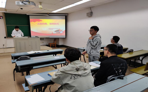 为深入学习贯彻习近平总书记关于学校党建和思政工作的重要指示批示精神,推动各学生党支部深入学习党史、新中国史、改革开放史、社会主义发展史(以下简称“四史”),根据教育部党组和学校党委部署,结合学校学生“四史”学习教育工作实际,开展“青春的我 信仰的光”主题党日活动。