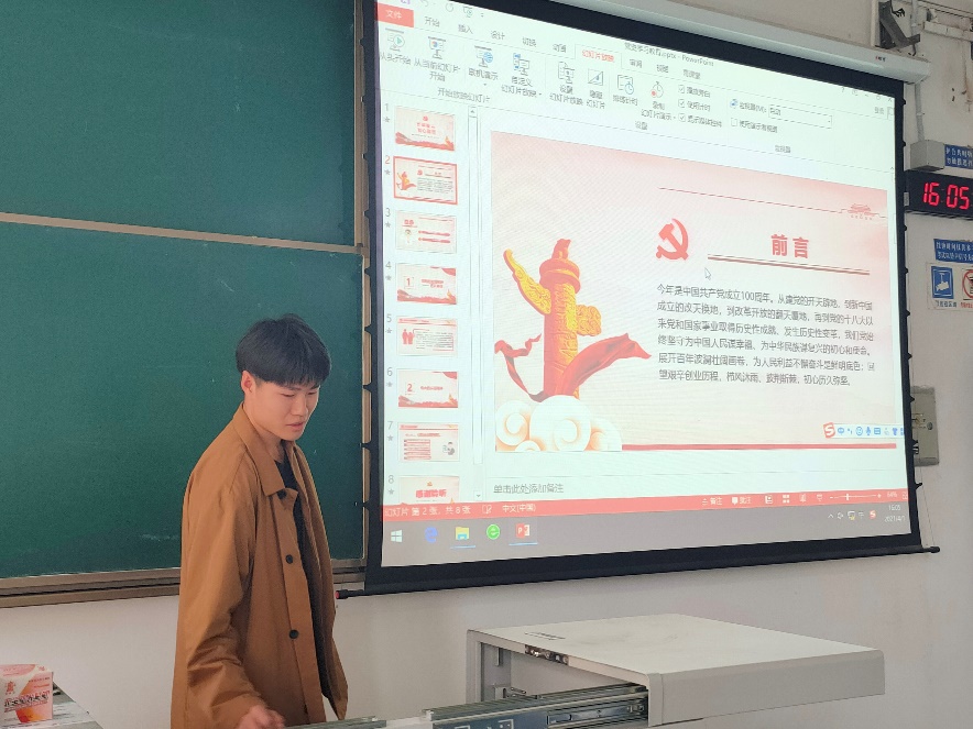 首先,杨子航同志为大家播放“弘扬长征精神,不忘奋斗初心”学习视频。视频简要概述了革命先辈在红军长征时所经历的艰难困苦与先辈在逆境中的强大意志力和崇高的革命精神。呼吁今天的我们不忘初心,弘扬长征精神,时刻牢记党员的使命,并为之不懈奋斗。