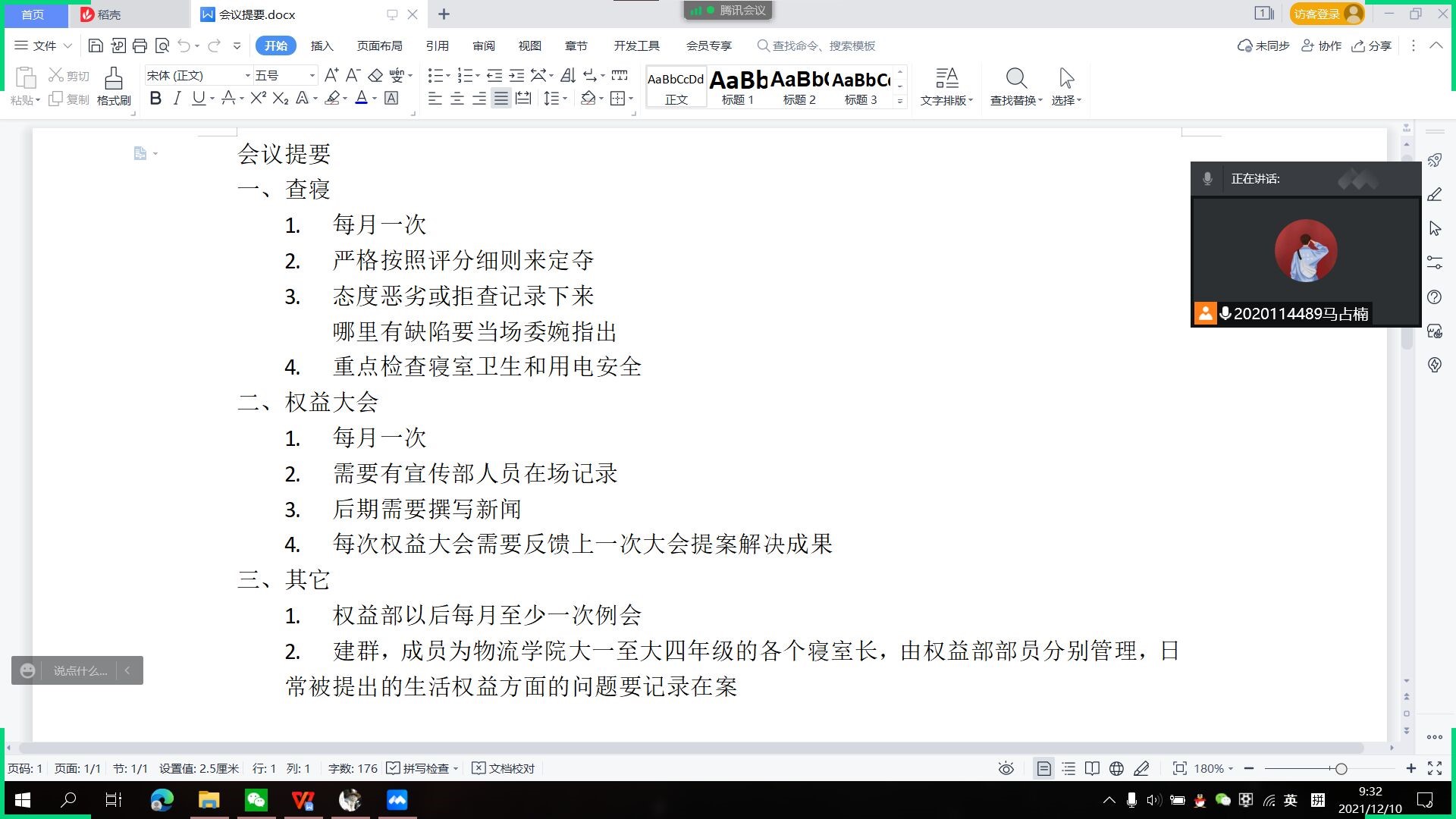 2021年12月9日12时30分,物理科学与技术学院2021-2022年度第一学期12月权益维护培训会于于腾讯课堂线上会议准时召开。参与此次会议的主要为物理科学与技术学院学生会权益维护部全体成员和物院全体权益委员,本次会议由物理学院学生会权益部部长马占楠主持。