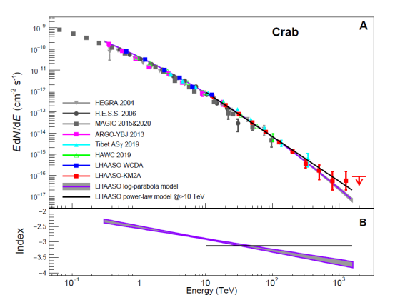 1. 蟹状星云的超高能伽马射线能谱测量。