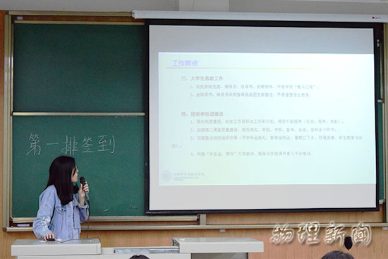 但同时,带领物理学院前进的团委没有止步于当下的成就,而是更多地回顾了不足,与展望更好的未来。物理学院2015级本科生年级辅导员、新闻中心指导老师郑艳总结了菁华物理新闻中心一学期以来的经验教训,明确指出了仍然亟待解决的新闻稿投放问题等一系列问题,对各社团、各班、各团支部及各人的新闻推送宣传提出了要求与期望,同时也向各部门发出请求,希望各部可以对新闻中心的新闻发布效率作出监督。