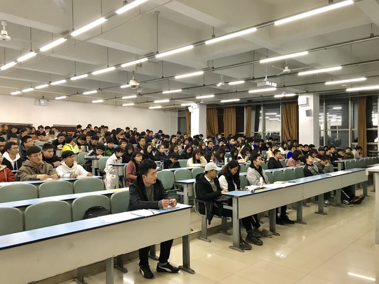 大会正式开始,吴杰老师首先就毕业条件给大家进行了深入的解释,从取得毕业证应满足的专业资格课、选修课、创新学分,到学位证应满足的英语成绩,等等需要满足的关键条件给在座的各位反复地强调,希望所有同学都能够正常毕业。此后,吴杰老师从就业、读研、保研三个毕业方向搭配着往届数据给大家进行了大致的介绍,让还在岔路口犹豫的同学进一步看清了前进的方向。详细的数据与资料网站无不透露出吴杰老师对同学们未来前途的关心。对于就业方面,吴杰老师提醒选择就业的同学要尽快寻找实习的公司机构,为自己的简历添砖加瓦。对于考研方面,吴杰老师也郑重地告诫大家,考研要付出实际的行动,光在嘴上说是考不上的,此外,考研是一场一个人的马拉松,坚持下去,就是成功。而对于保研方面,吴杰老师也一再强调了保研资格的重要性,同时也建议有把握的同学积极地寻找关于心仪学校专业的夏令营及导师的信息。
