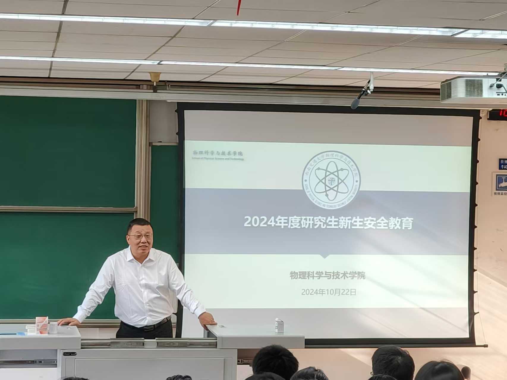 为帮助2024级研究生新生更好地适应研究生阶段的学习与生活,20241022日下午,物理科学与技术学院在J4318教室开展了研究生新生入学教育。出席本次大会的领导和老师分别是学院党委副书记兼副院长郭剑老师,学院院长助理、研究生教育教学中心主任周涛副教授,研究生教育教学中心副主任、研究生教务王静雅老师,学院就业专项工作负责人王春蕾老师,研究生辅导员何迪雅老师。大会由研究生辅导员何迪雅老师主持,2024级全体研究生参加。