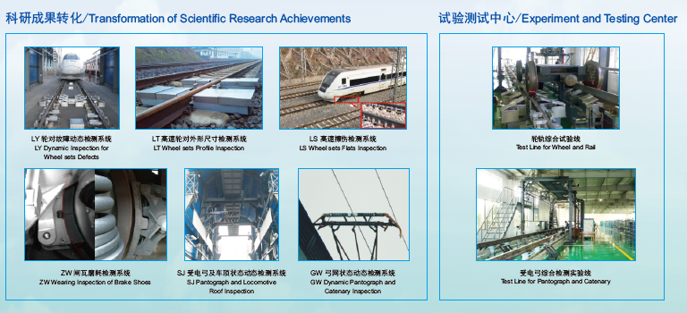 Photoelectric Engineering Institute has already accomplished more than ten national projects, and nine science and technology development projects of the Ministry of Railways and hundreds of projects cooperating with railway bureaus. The Institute has been awarded eight prizes for scientific and technological progress from the Ministry of Railway and Sichuan Province's government, and five prizes from Chengdu government. The institute has obtained more than 80 patents including inventions and utility models.The Institute has made contributions to the development of rail transit detection technology in China.