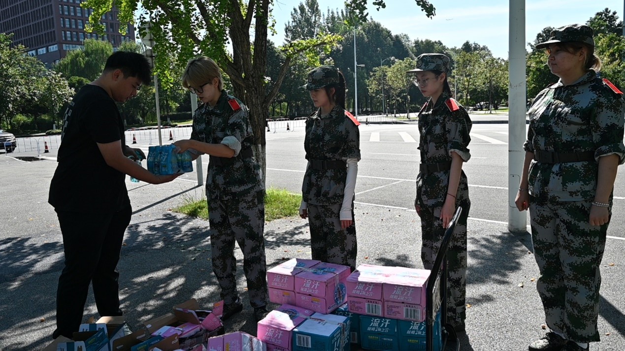 学院党员们为参训同学发放了解暑饮品,并与同学们进行亲切交流,提醒参训学生注意做好防晒防暑工作,时刻注意自身安全。