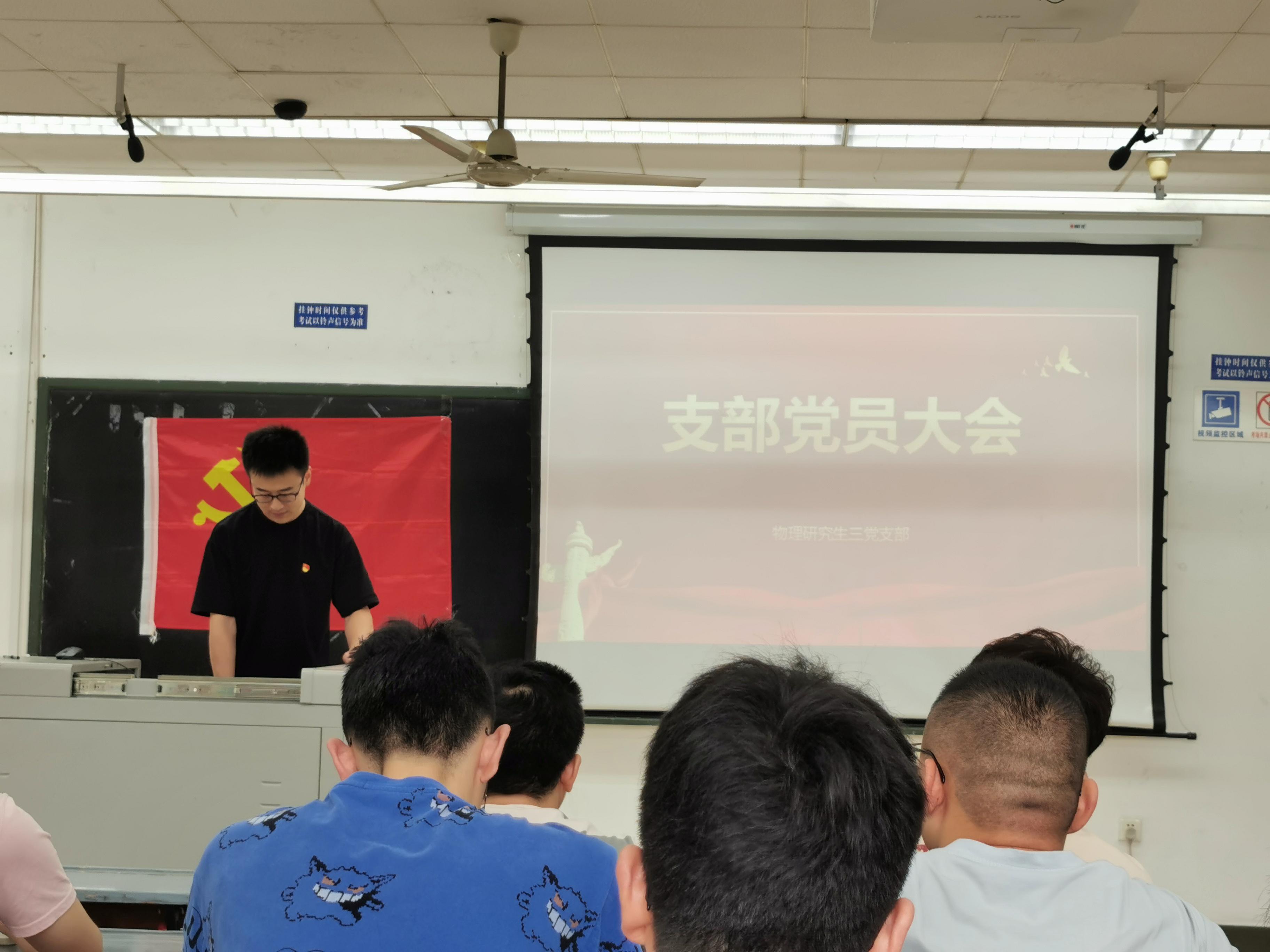 2023年6月23日14:00,物理研究生三党支部在九里校区J4407A召开预备党员转正大会。本次会议由物理学院研究生三党支部副书记孙海龙同志主持。