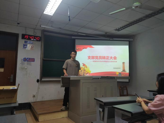 6月23日,物理科学与技术学院研究生四党支部在4405B教室召开了党员大会,讨论预备党员转正问题。本次会议由党支部副书记文鹏旭同志主持,主要内容是审议、讨论及表决是否同意张文昊、李新雨、文靖杰、刘云萱、左明兵、王天香六位同志的转正申请。