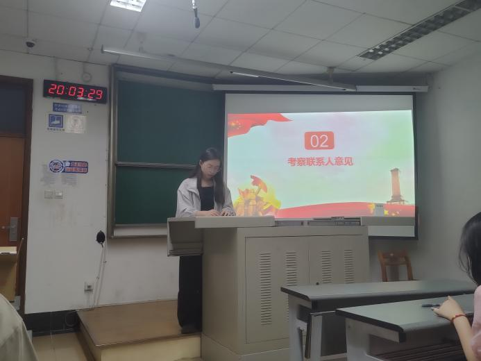 接着,六位同志的考察联系人李云涛、曾妮、陈义、陈欣、秦荣荣、唐思颖同志依次介绍了六位同志在考察期的表现。六位同志在考察期间,皆能做到在政治思想上自觉与党中央保持一致,能够坚持基本原则,平时注重学习党的知识,入党动机明确,态度端正,建议按期转为正式党员。