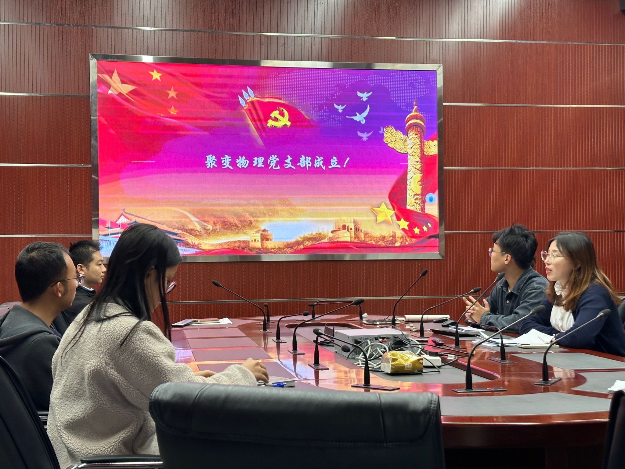 会议开始时,张文宣读《研究生支部划分方案》。为避免超大支部问题,对标先进集体,突出支部典型,打造标杆型研究生样板支部,在等离子体物理团队率先开展试点工作,设置“聚变物理党支部”。经学院决定,聚变物理党支部由许宇鸿老师担任指导老师,周玲老师担任支部书记,聚变物理党支部正式成立。