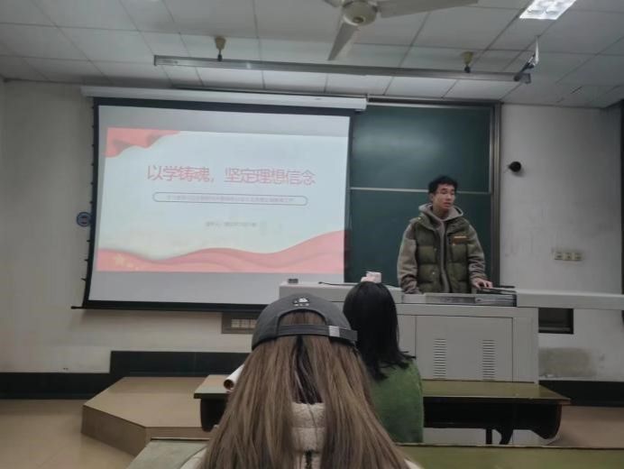 11月15日19:30,物理学院研究生四党支部在九里校区J4420开展了以“以学铸魂,坚定理想信念”为主题的党日活动,物理学院研究生四党支部指导老师杨昊戬、支部书记夏荣林及全体研究生党员参加了此次学习活动,会议主要内容是由支部副书记文鹏旭同志进行理论领学分享。
