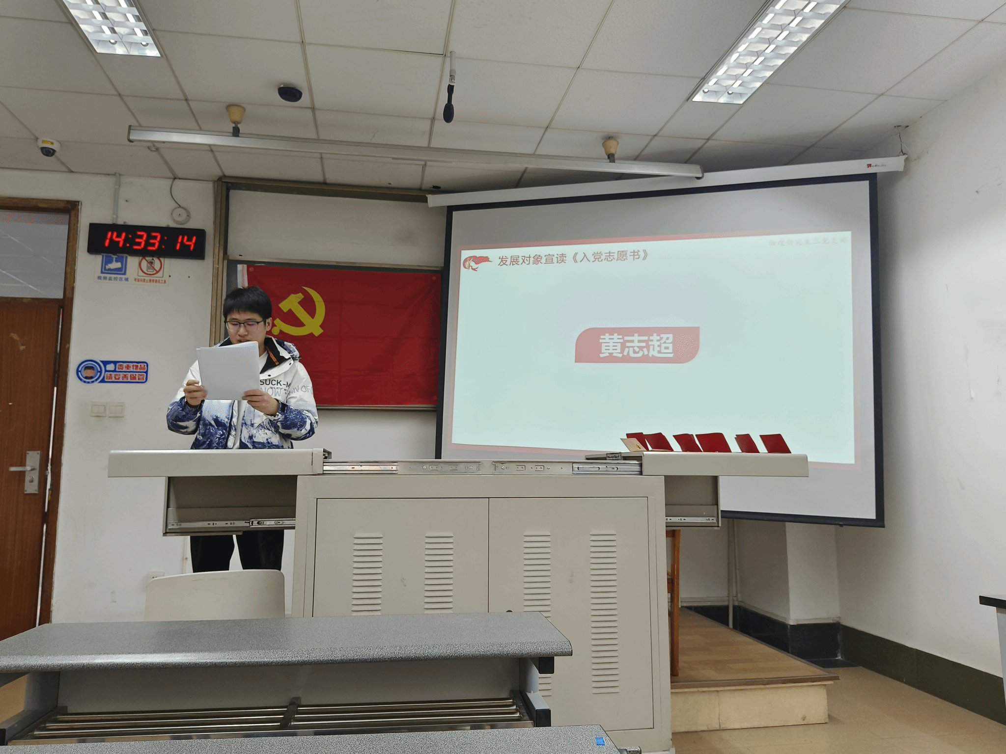 接着,两位发展对象分别宣读《入党志愿书》,陈述自己对党的认识和入党动机等。