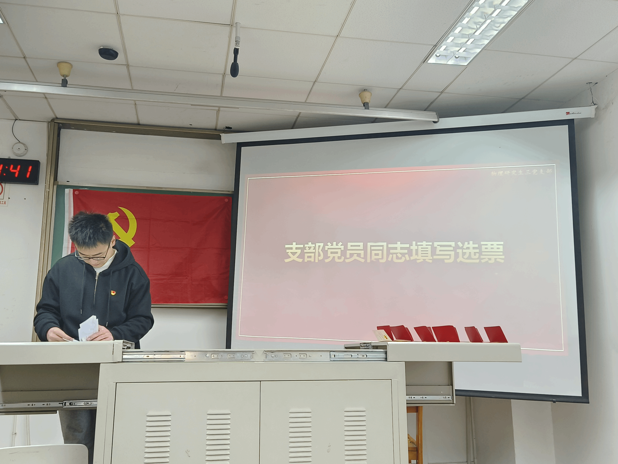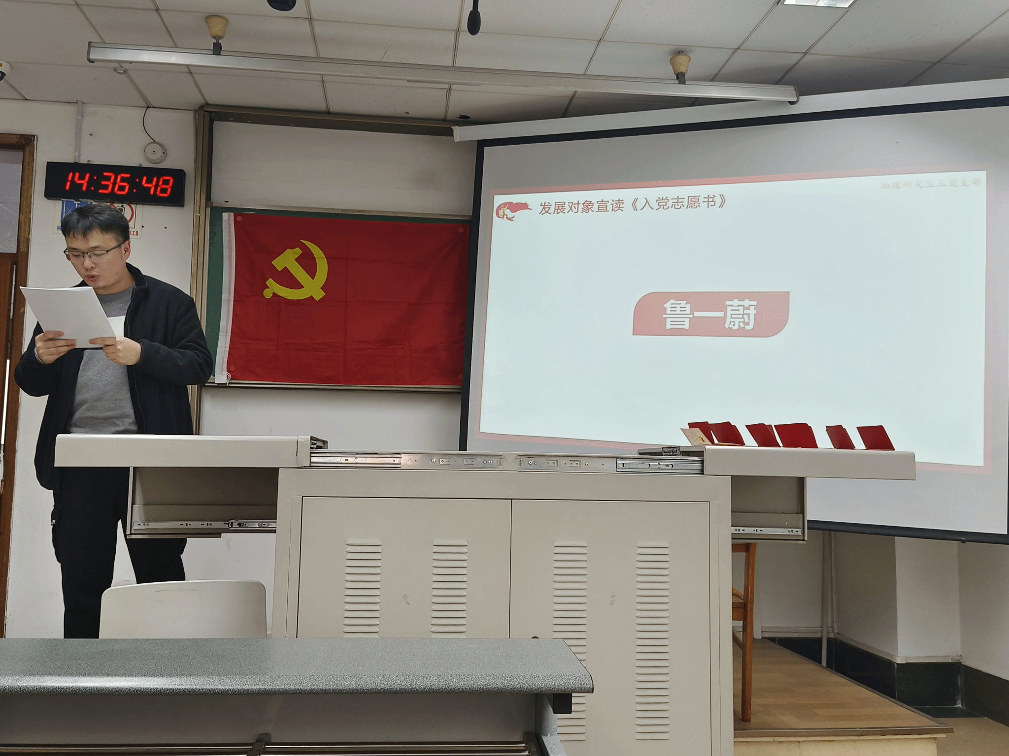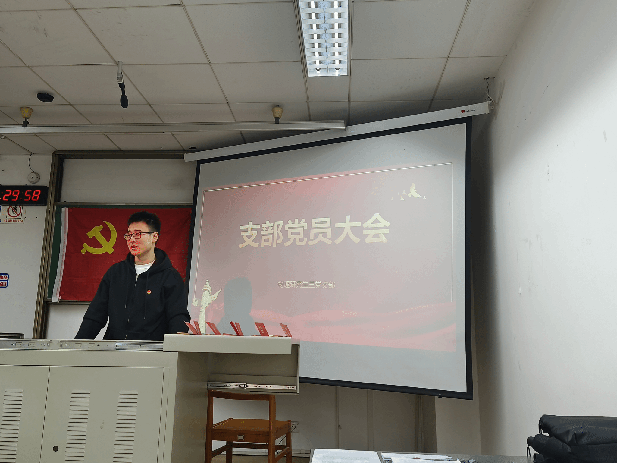 2023年12月7日14:30,物理学院研究生三党支部在九里校区J4305B召开预备党员转正大会暨预备党员接收大会。支部共有正式党员29名,因病、因事请假7名,实到正式党员22名,符合有关规定可以召开大会。本次会议由物理学院研究生三党支部副书记孙海龙同志主持。