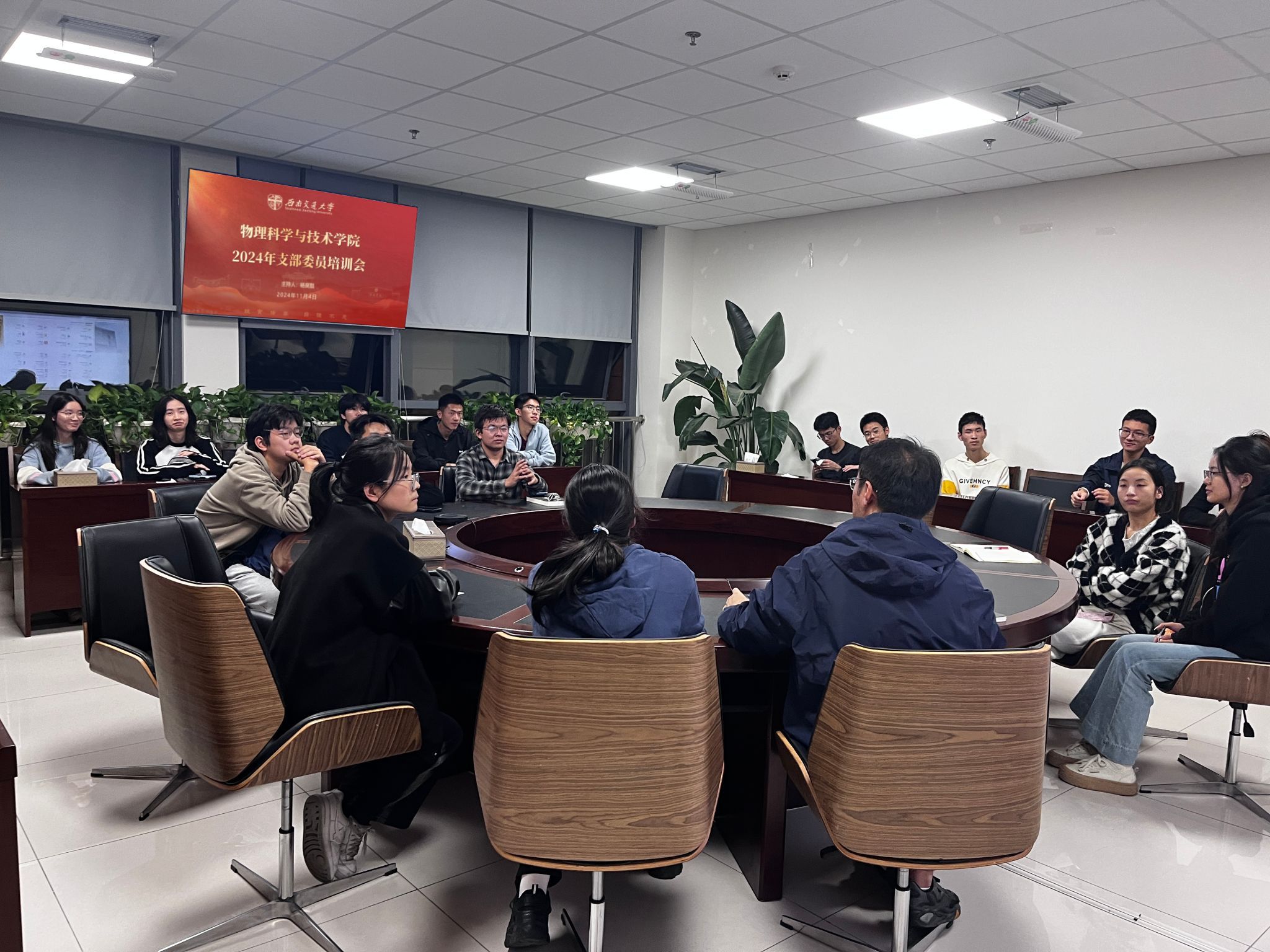 为提高学生党支部委员会委员的政治素质、政策水平和履职能力,11月4日,物理学院组织开展学生支部委员专题培训,院属各学生党支部书记及支部委员参加。会议由学生党建专项负责人杨昊戬主持。