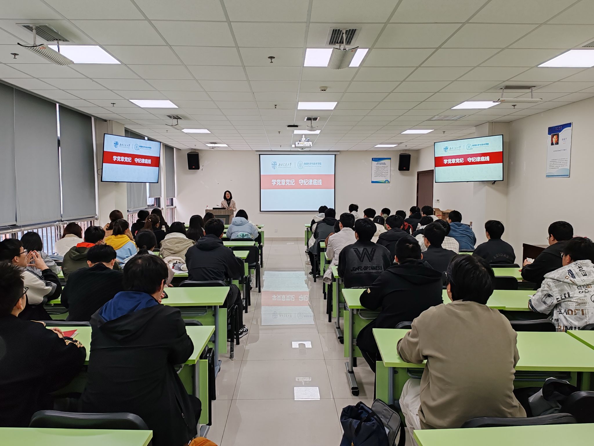2025年3月22日上午,学院党委书记李卓慧以“学党规党纪 守纪律底线”为题,为学院学生党员讲党纪学习教育专题党课,并重点讲授了习近平新时代中国特色社会主义思想、《中国共产党章程》和《中国共产党纪律处分条例》。