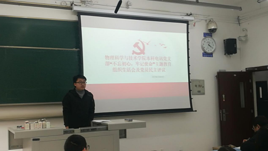 2019年12月5日下午四时,本科电子信息科学与技术党支部于犀浦X2225开展不忘初心牢记使命主题组织生活会与党员民主评议会。物理学院党委副书记郭剑参加会议并指导会议开展工作。