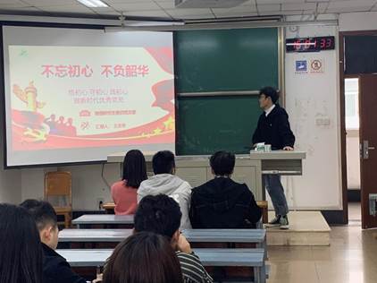 党支书张煜峰对本次活动进行总结。我们有幸处在新时代,更有责于新时代。作为学生党员,在校期间,脚踏实地,不懈努力,与时俱进,学好专业知识,提高文化素养,培养专业能力,不断提升自身综合素质,为中国特色社会主义事业贡献自己的力量。