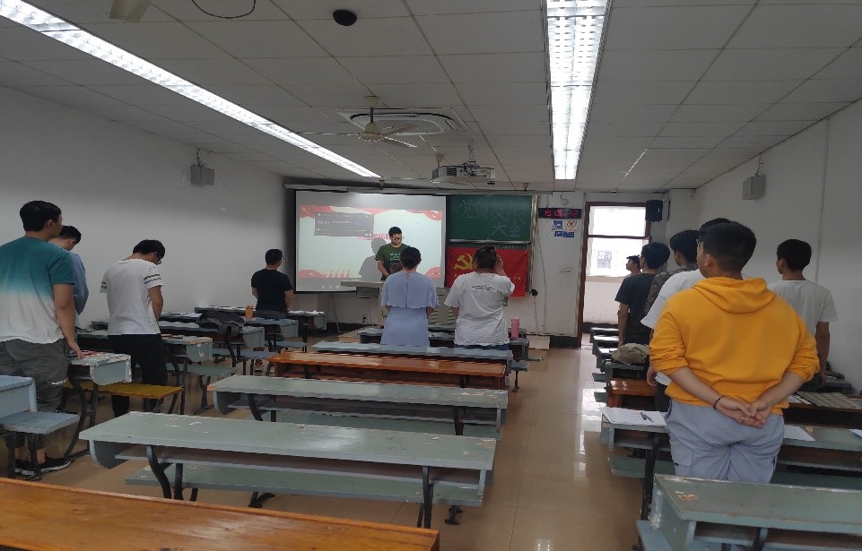 首先是在党支部副书记张润午同志的组织下,全体党员和发展对象起立奏唱国际歌。