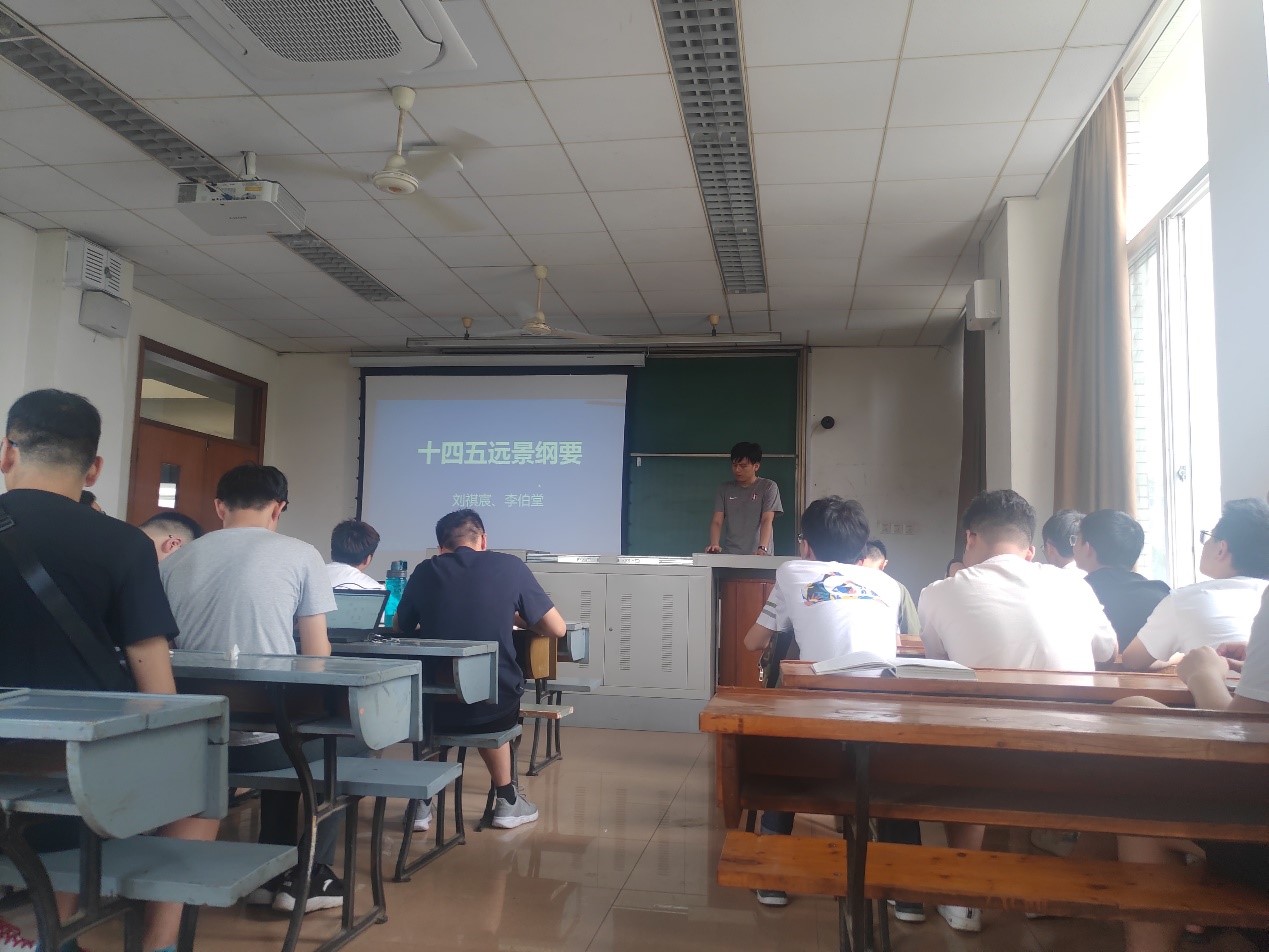 随后,刘祺宸同志讲解了十四五规划和2035远景纲要。。接着尹磊、邓洲、覃海飞同志分别向大家分享了6首特色鲜明的主旋律歌曲,让大家在歌曲中体会我党在祖国建设方面所做的贡献,王莲同志分享到:“通过学习十四五的相关知识,我心中能感觉到2035年的祖国更加的美丽富强,同时,当听到《灯火里的中国》时候,我能够切身体会到我党用初心换回的百年承诺。”