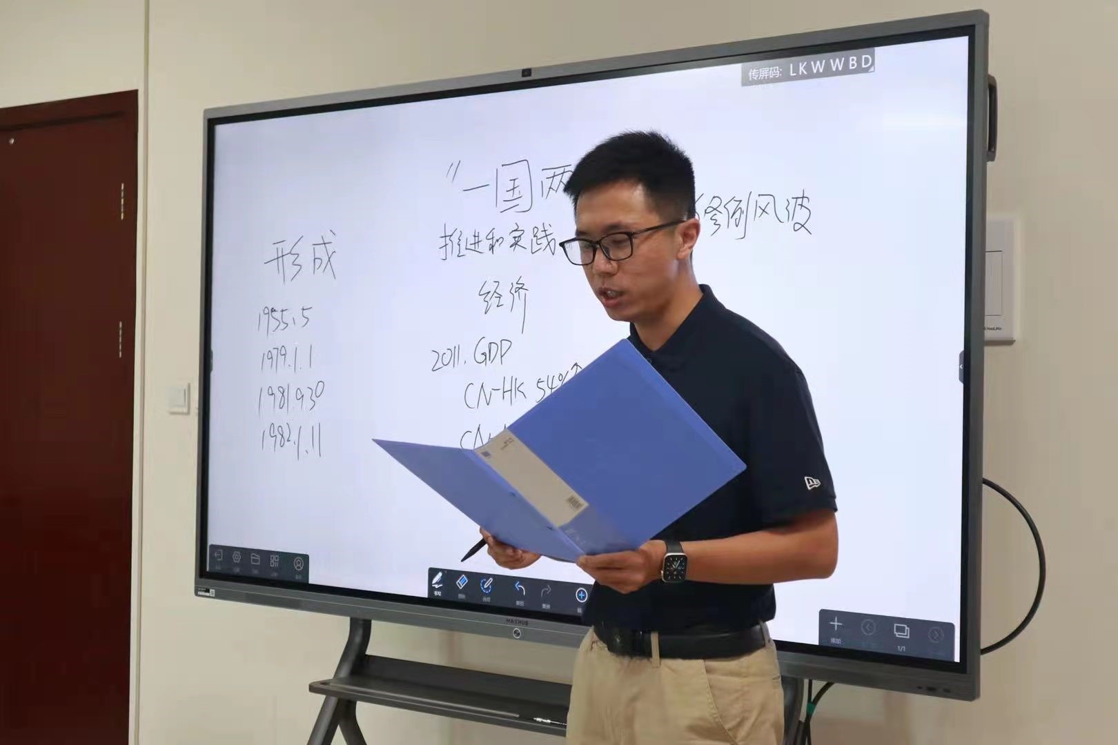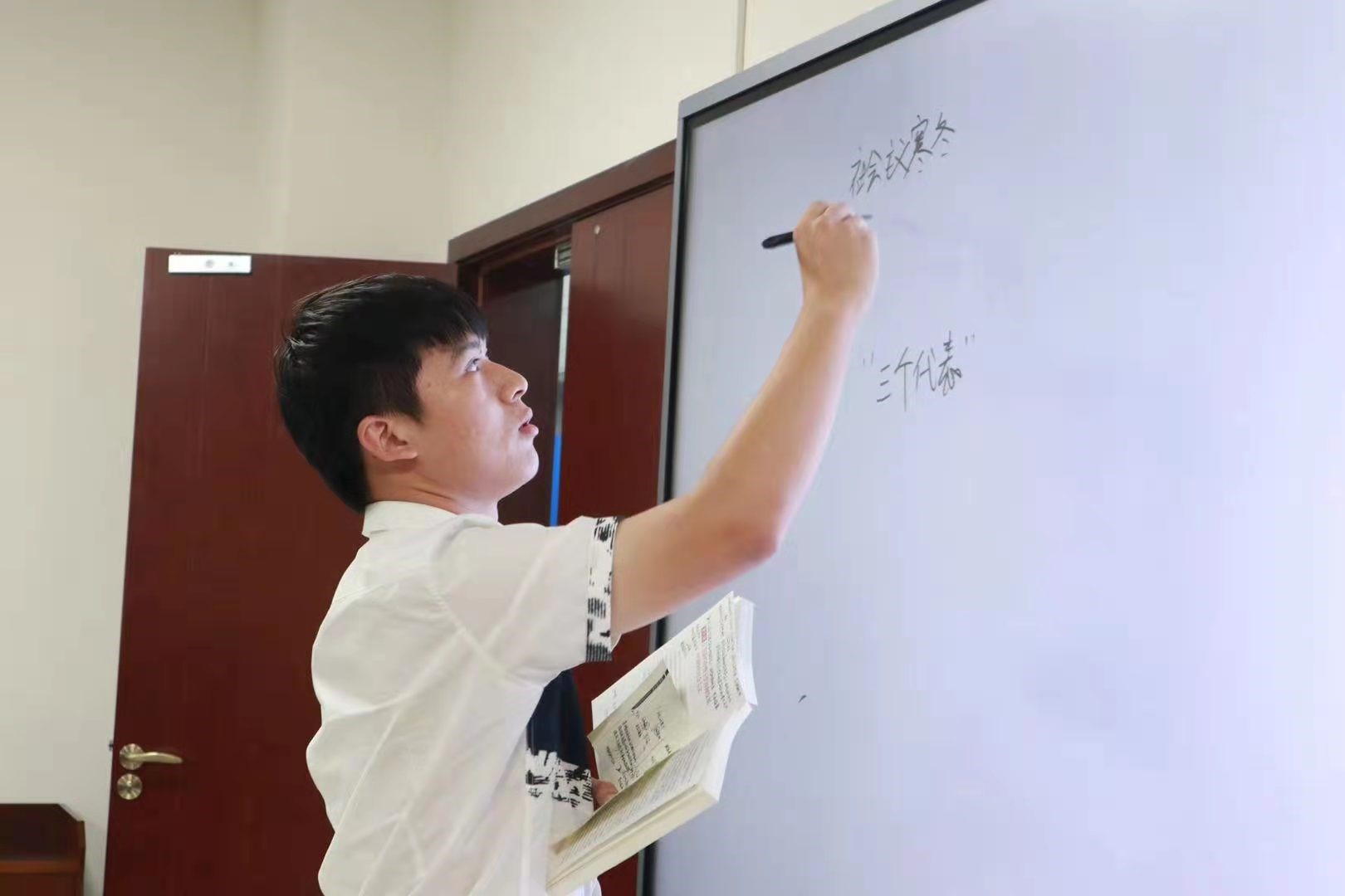 三位主讲人生动的领学为各位老师展示了中国特色社会主义理论体系和制度,展现了中国特色社会主义的魅力。力学学院田甜老师、数学学院周睿老师和物理学院杨颖钊老师作为辅导员代表分享心得,表示要利用党史知识,汲取精神力量,增强“四个自信”。本次擂台赛主讲人们用简洁原本的讲述方式,一支笔、一本书、一块白板、一颗心,原原本本学党史、实实在在谈感悟,学党史,守初心。