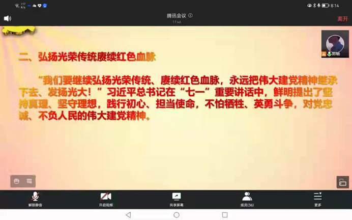 最后郭畅同志强调,要进一步增强学习宣传的针对性实效性,引导支部全体党员把学习“七一”重要讲话精神的成果转化为奋进新征程、建功新时代的实际行动,推动习近平总书记重要讲话精神落地生根。