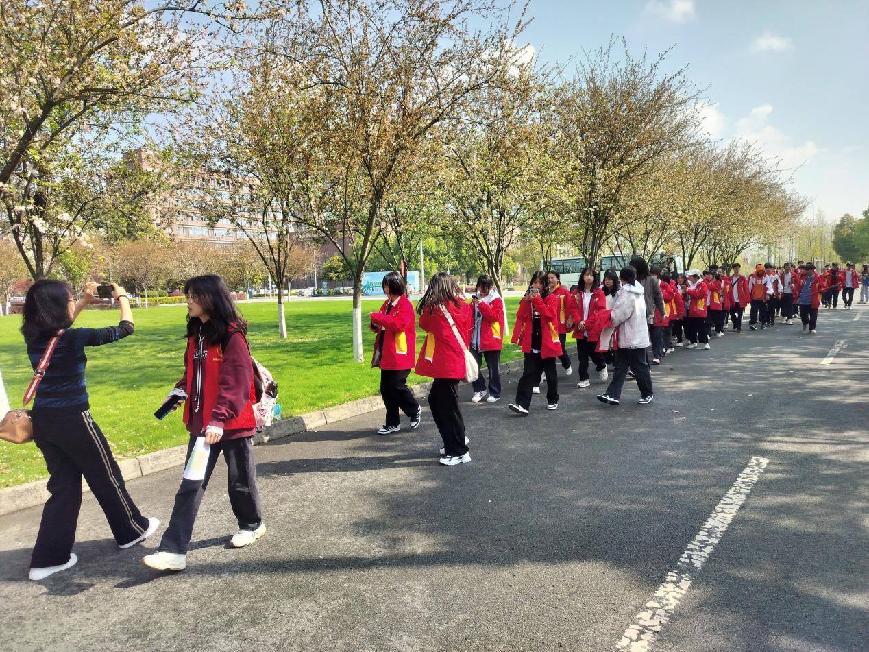 最后同学们在志愿者的带领下,边欣赏交大校园内沿途的风景边前往报告厅,准备聆听“走进交大”的主题讲座。过程中,同学们与志愿者们积极互动,提出诸多关于交大建校历史、学术活动和校园设施等的问题,与同伴互相分享研学途中的感受和参观的喜悦,展现出对西南交大这所拥有百年深厚底蕴名校的憧憬与向往。