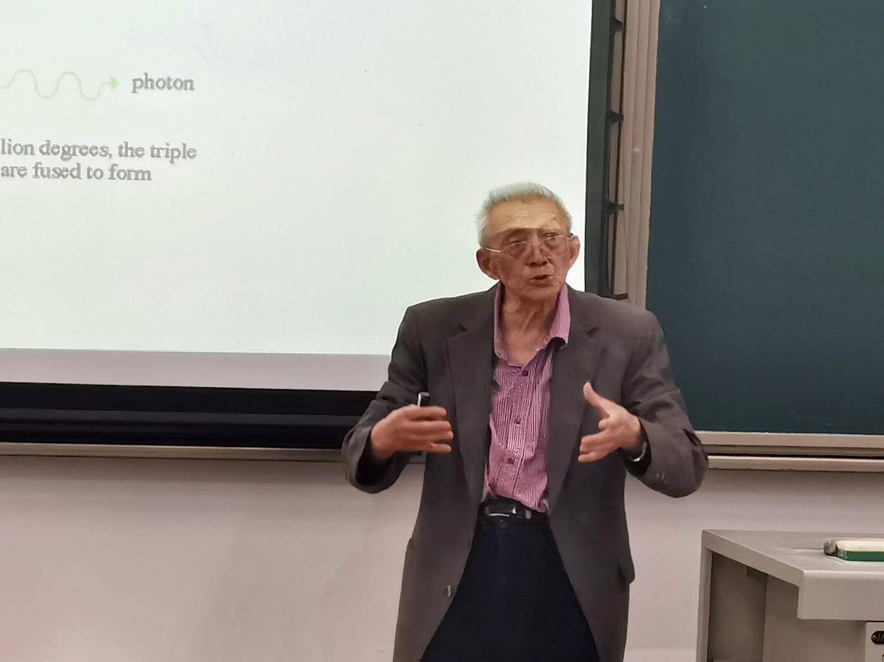 讲座中,彭秋和教授用深入浅出的讲解,介绍了恒星和超新星的奥秘;同时解释了由他提出的,磁单极催化核衰变作为新能源的创新观念。他首先介绍了恒星(太阳)内部的热核燃烧和热核演化史,解释了恒星如何通过核聚变产生能量,并随时间的推移所发生的变化。接着,他介绍了两类超新星——I型和Ⅱ型,其分别由白矮星和大质量恒星转变而来。他重点讲述了核心坍缩型超新星爆发机制研究的国际主流思想及其难点,阐述了为何目前的理论模型无法解释超新星爆发时所产生的巨大能量。