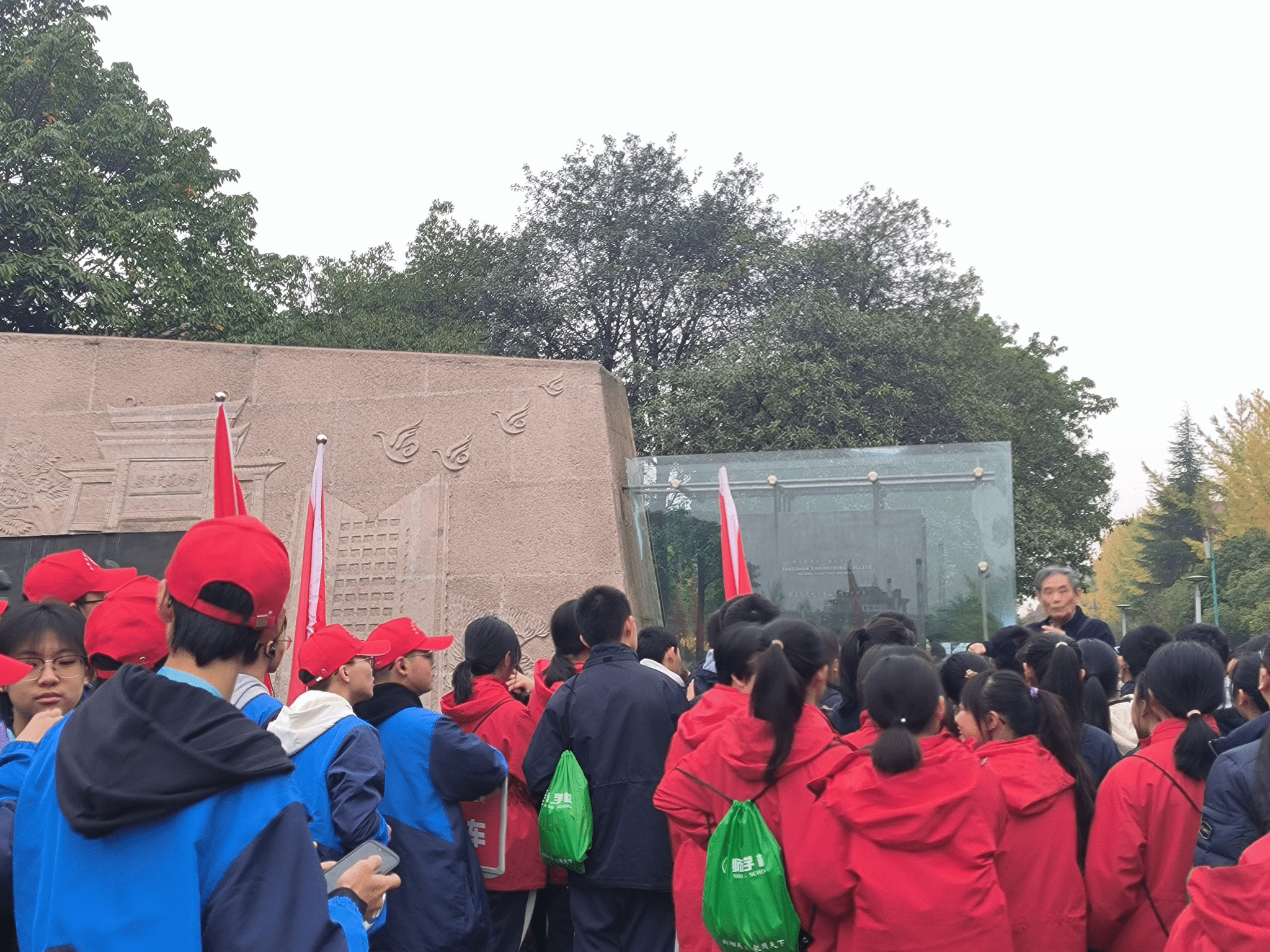 接着来到竢实扬华墙,学弟学妹们聚在一起认真地听着志愿者们讲解时间轴代表的意义和交大的历史,让他们对交大有了更加深入的了解。并在竢实扬华墙前合影留念。