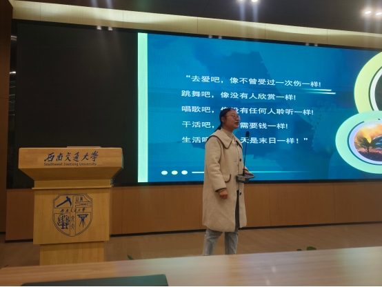 她首先强调了生命观教育对于青年学生的重要性,并鼓励学生们要珍惜生命,理解生命的多样性和复杂性,以及如何在日常生活中实践对生命的尊重和爱护。随后,深入探讨了生命的哲学意义和个体生命价值的实现。她通过深入浅出的讲解,结合古今中外的哲学思想和现代科学知识,让学生们深刻理解到生命的宝贵和脆弱,以及如何在有限的生命中追求无限的意义。