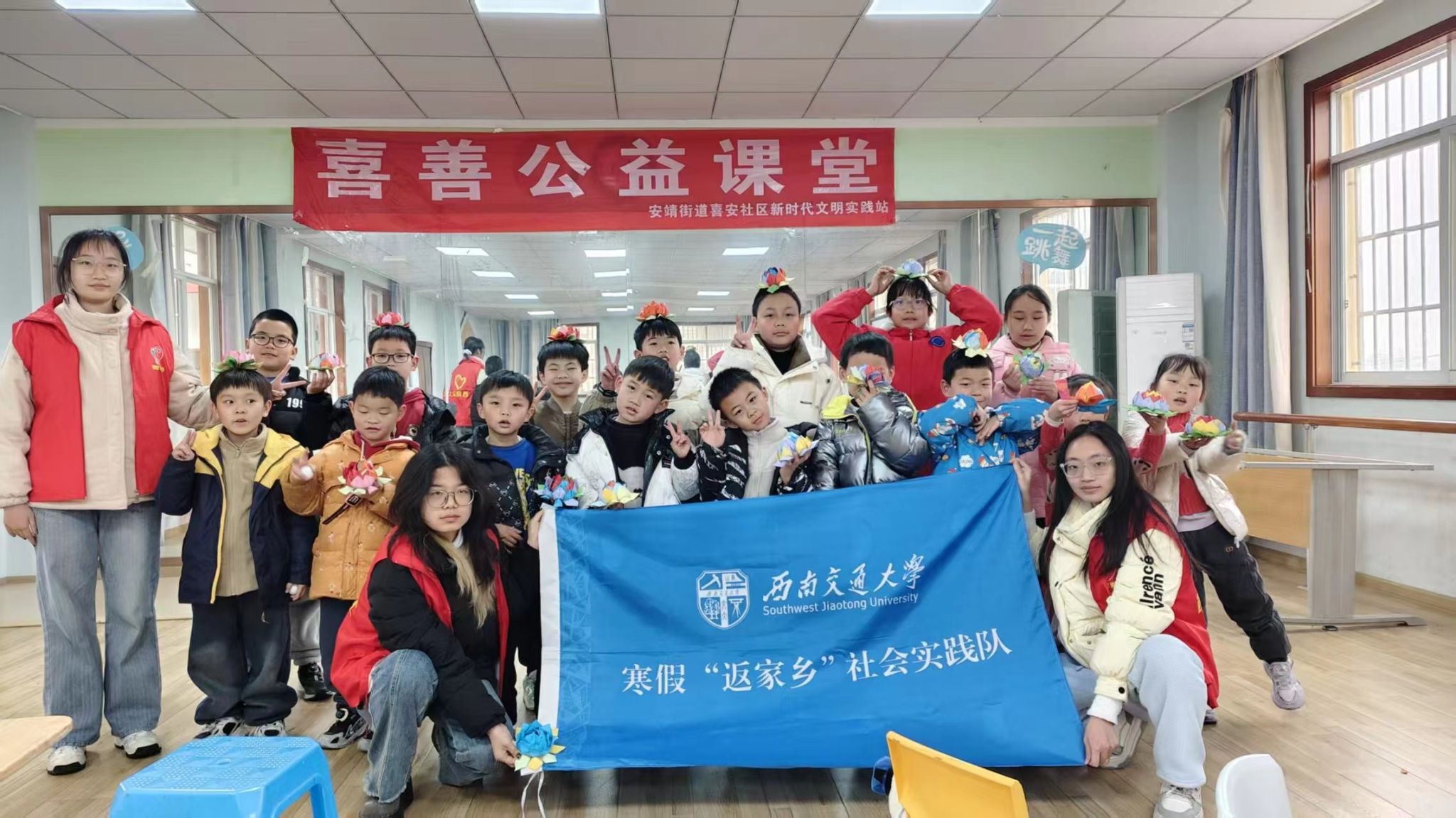 实践队于2025年1月11日至17日前往成都市郫都区安靖街道办事处喜安社区,为当地小学生带来为期7天的丰富多彩的教学课程,旨在拓宽孩子们的视野,充实寒假生活。
