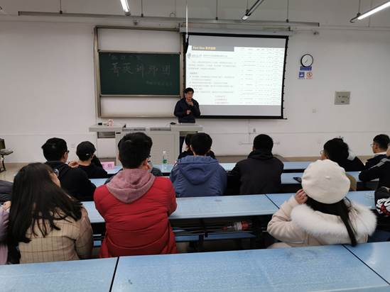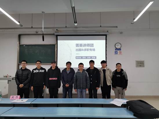2019年11月29日晚7:30,由物理科学与技术学院学生会双创部和学习部承办的“菁英讲师团——求职&出国专场”分享会于X2418举行。物理科学与技术学院学生会指导老师、2016级辅导员吴杰老师,讲师团成员、2016级学生季天皓、贾朔、李赞,物理科学与技术学院学生会副主席陈济然、龚华金出席本次活动。此外,众多学院学生热情积极地前来参加此次分享会。