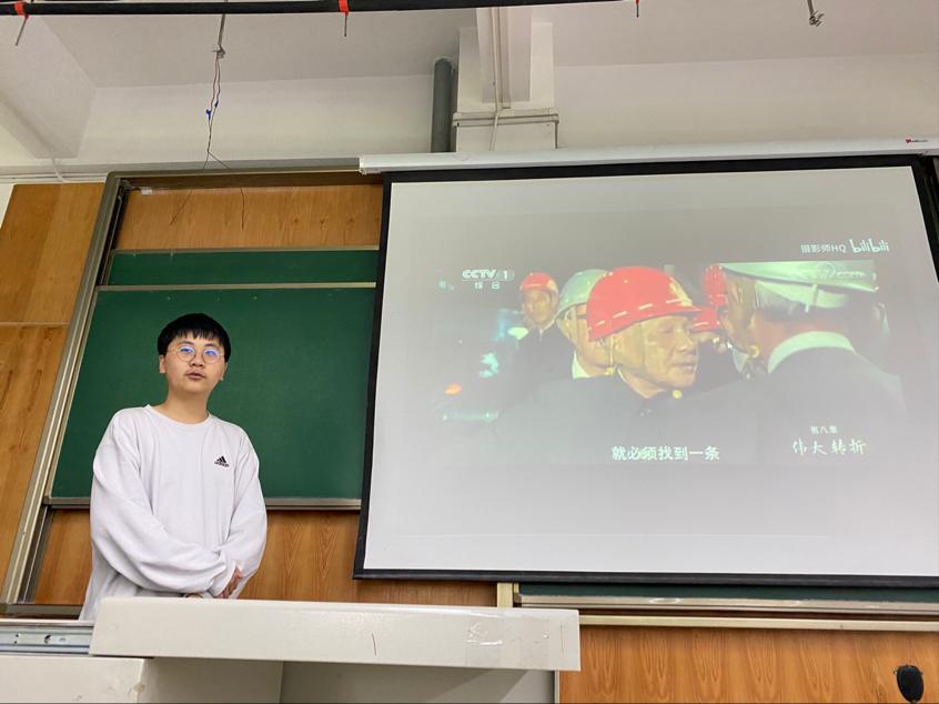 团课伊始,团支书牟昭旭带领同学们观看了纪录片。纪录片从中国共产党成立,到发展,到壮大,再至今天带领中华民族走上民族复兴之路展开,全线贯穿了中国共产党发展脉络。同学们通过纪录片,深刻了解到了党的曲折发展历史。