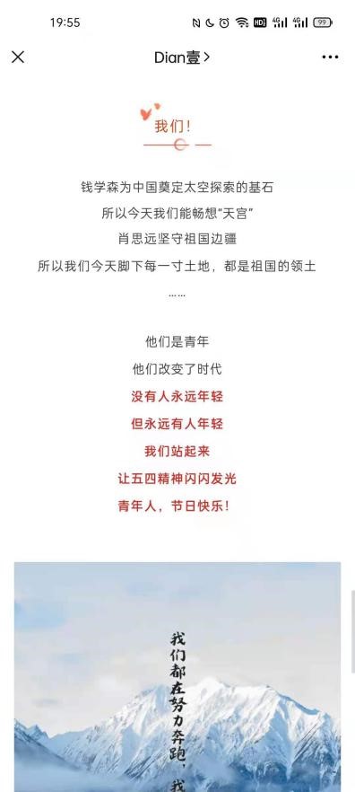 首先,团支书牟昭旭带领支部同学们一起阅读了五四青年节微信主题推文。根据推文,他详细介绍了五四运动,以周恩来同志和毛泽东同志青年时期的丰功伟绩为切入点,鼓励同学们趁年轻励志进取,志当报国,传承发扬五四精神,探索五四精神的新时代内涵。