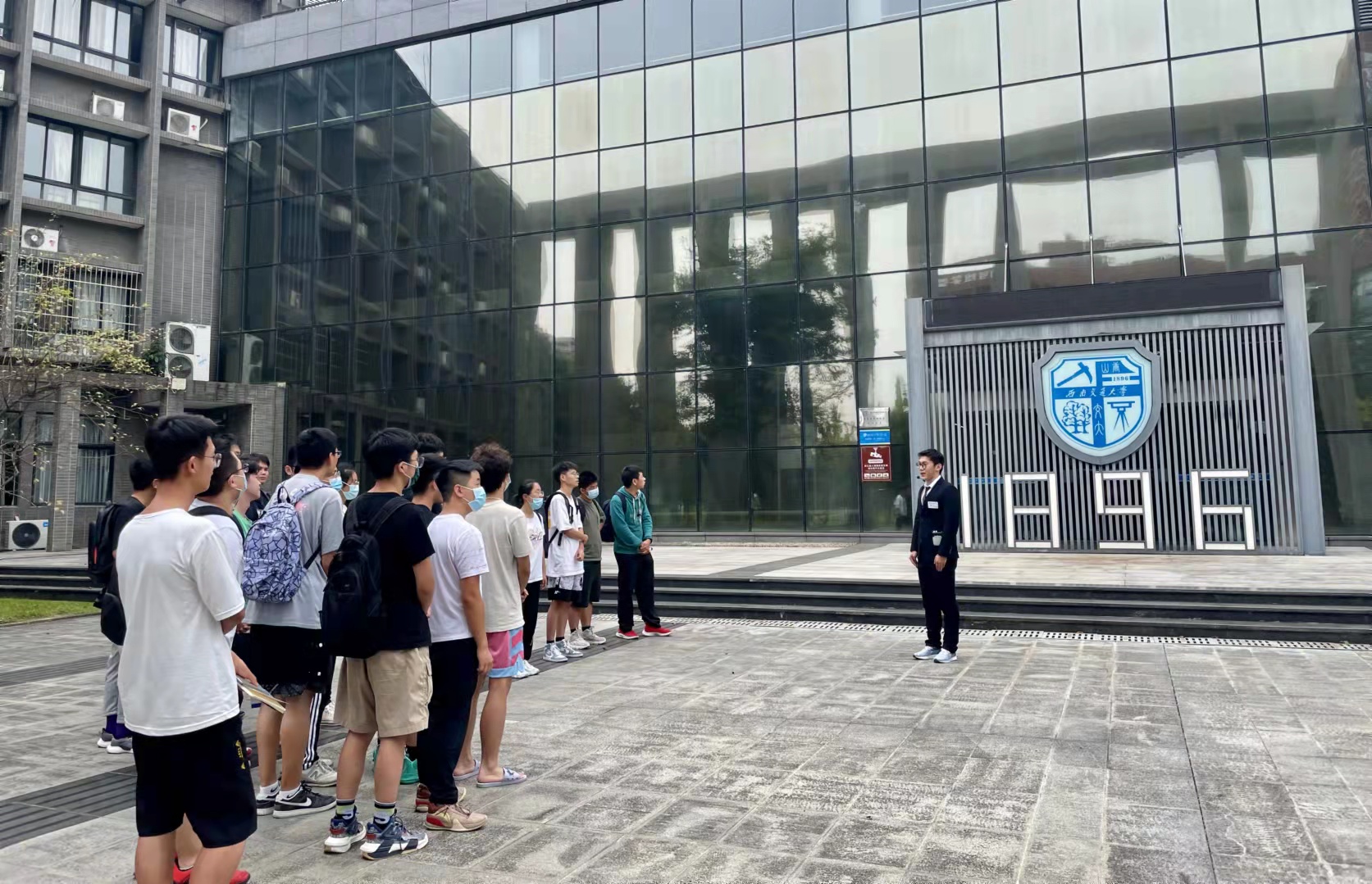 同学们在前广场了解了校史馆的建立以及两处有意义的景观,一处是1947年抗战胜利后在唐山举办校庆由北平校友会捐赠的汉白玉纪念碑,一处是来自唐山校园的老树根,意味着唐山是学校的根基。