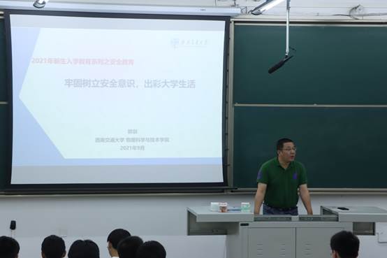 为全面开展学院安全教育工作,提高同学们的安全防范意识,2021年9月27日晚上,物理科学与技术学院2021级新生入学安全教育讲座在X2218顺利举行。本次讲座特邀物理科学与技术学院党委副书记郭剑主讲,学院团委书记、学工组副组长门满洲、2021级辅导员老师龚高秦、夏荣林以及全体2021级新生参与讲座。讲座由龚高秦主持。