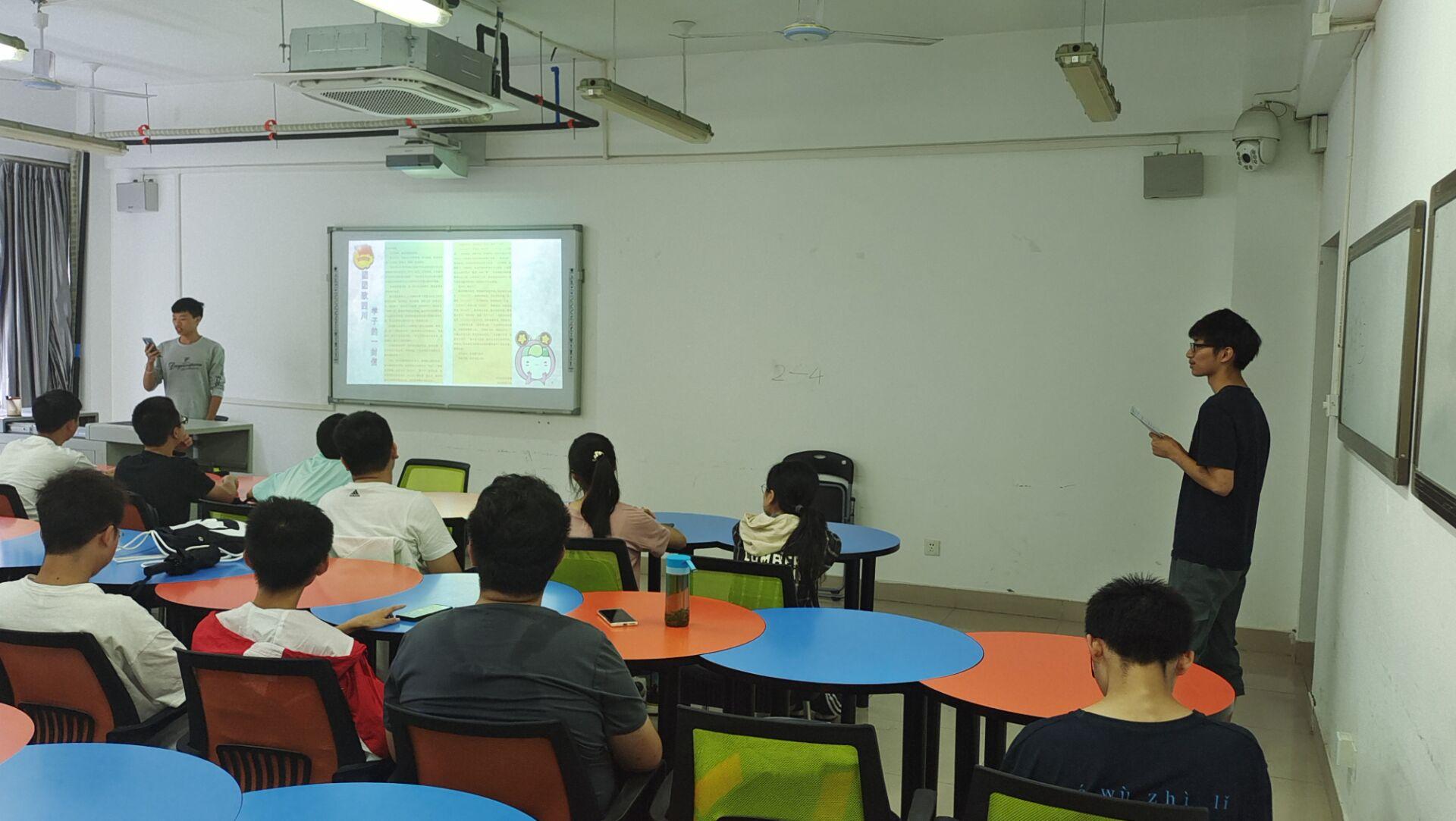 活动以全体奏唱《光荣啊,中国共青团》开始,樊何林同学以昂扬的主持词带领团员们先后学习了《团团致四川学子的一封信》及“请党放心 强国有我”《倡议书》。随后,全体团员青年观看了“强国有我”主题视频,深入理解了习近平总书记“七一”重要讲话精神。最后,团课以全体同学合唱《强国有我》歌曲圆满结束。