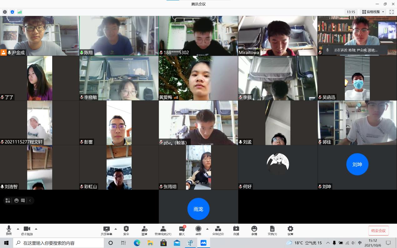 首先,在班长尹金成同学的号召下,全体同学准时在15:00上线,参与此次会议。