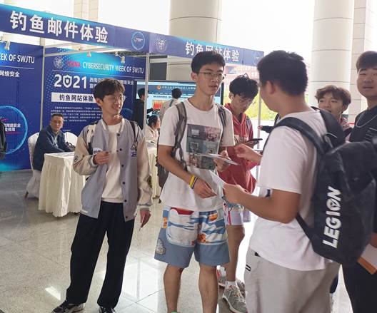 为提升同学们的网络安全意识和技能,2021年10月14日,物理科学与技术学院2021级电子信息科学与技术二班在班长王业恒的组织下于图书馆二楼平台参加了学校网络安全宣传周现场体验日活动。活动开始,同学们领取了网络安全知识宣传知识手册后进行了“钓鱼网站体验”、“钓鱼邮件体验”等现场互动体验。