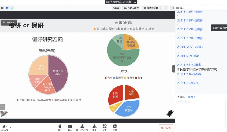 随后,五位主讲人结合自身经历分别从保研、考研、出国三个方面向大家分享了自己的经验与心得。
