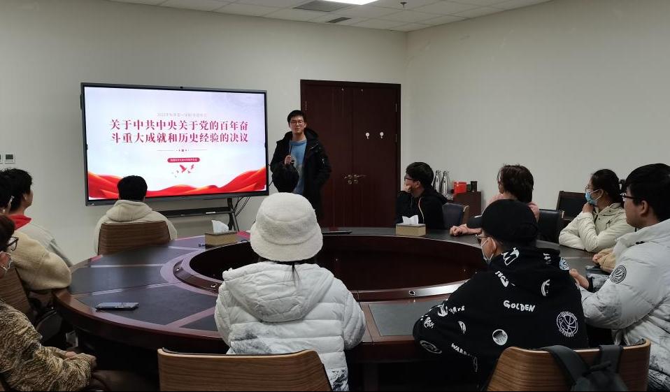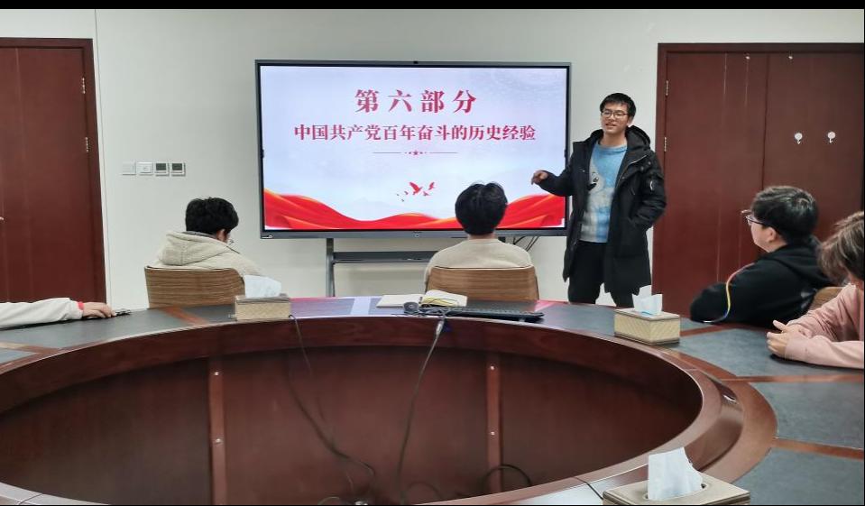 2021年12月5日晚21:20,物理科学与技术学院学生会于X30345开展学习《中共中央关于党的百年奋斗重大成就和历史经验的决议》。本次学习会由学生会文体部部长刘伊锐主持,学生会全体成员参与学习。