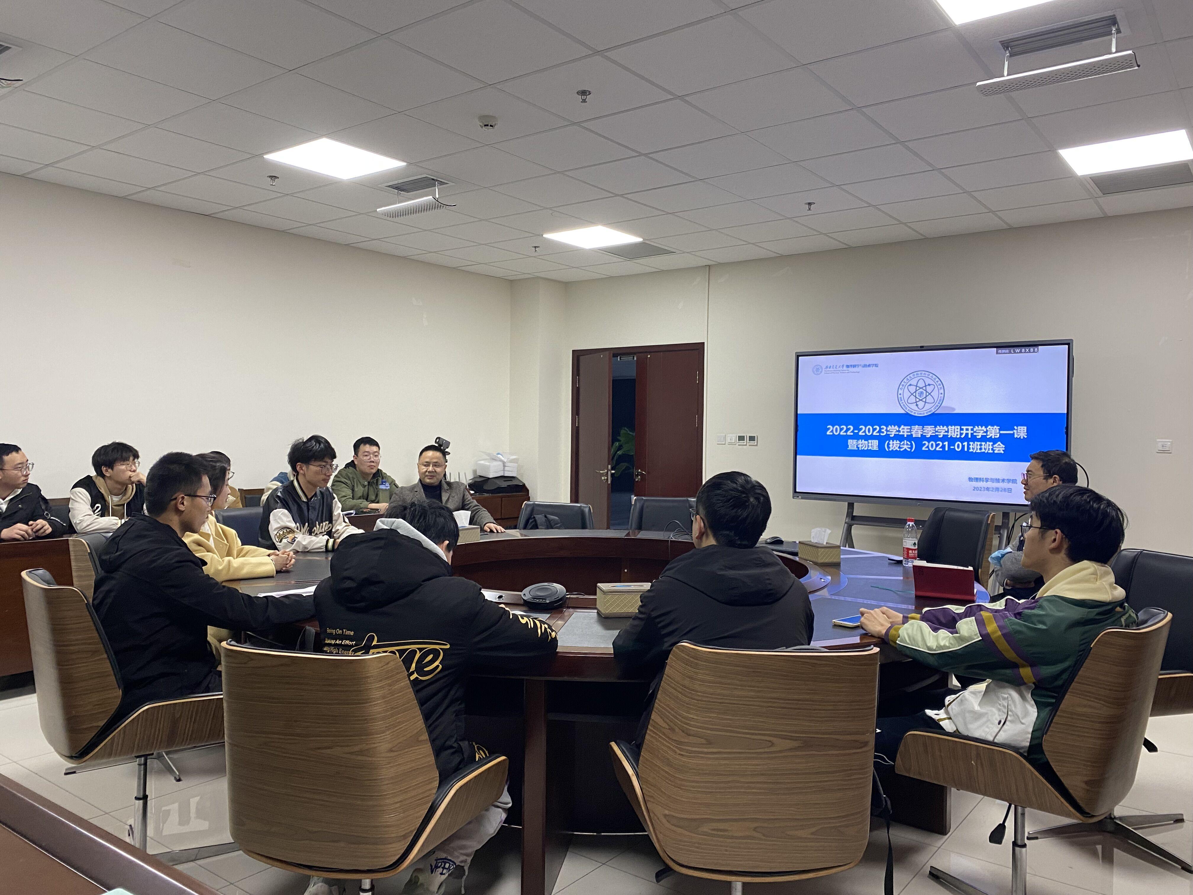 新学期,新气象。为帮助同学们在学期初尽快调整状态,解决同学们在学习和生活中遇到的各种实际困难。2月28日18点30分,物理(拔尖)2021-01班在X30345开展了2022-2023学年春季学期开学第一课暨第一次班会。本次会议由班导师程钧、丁毅和辅导员夏荣林共同主持,拔尖班全体学生参与。