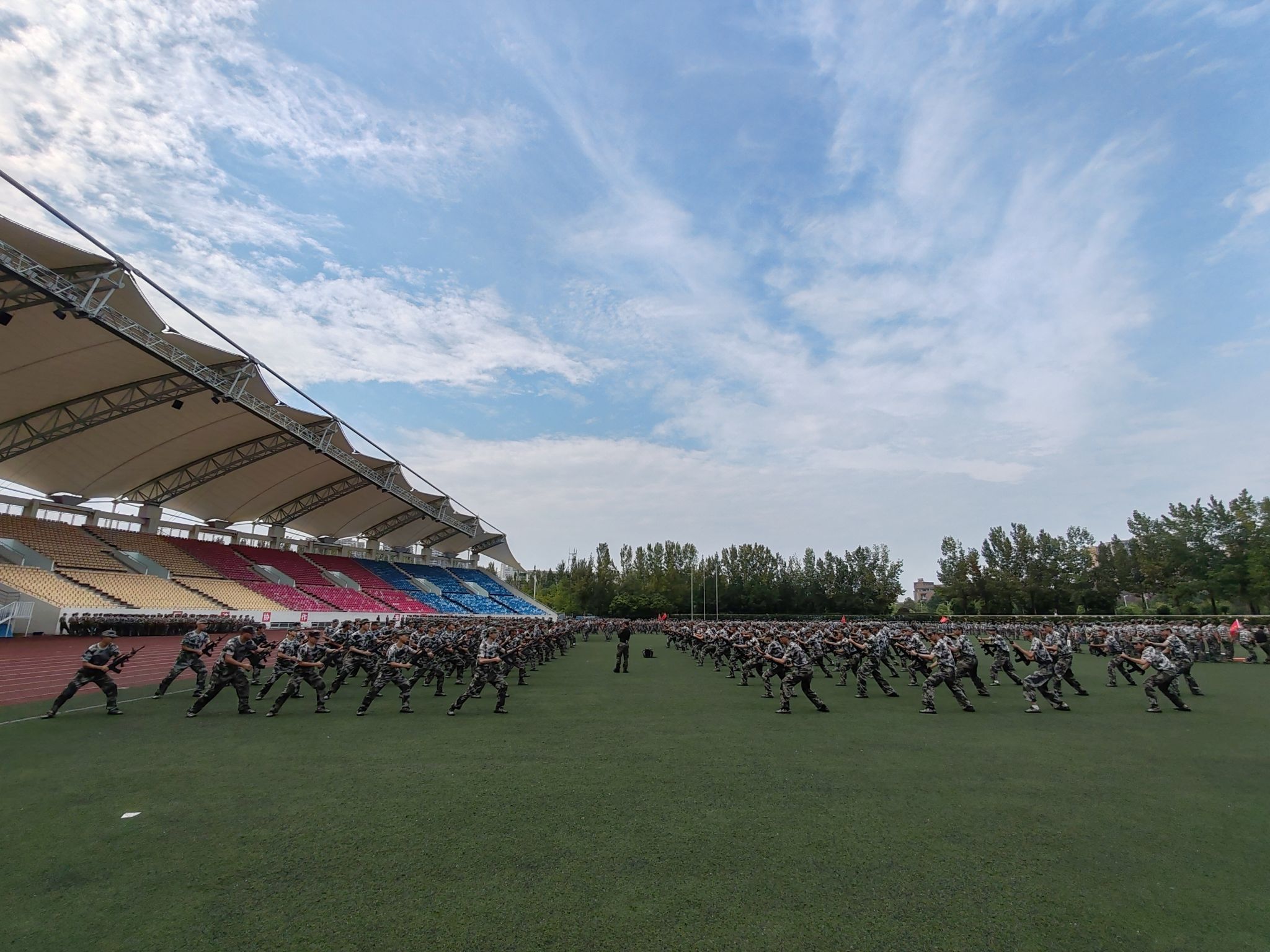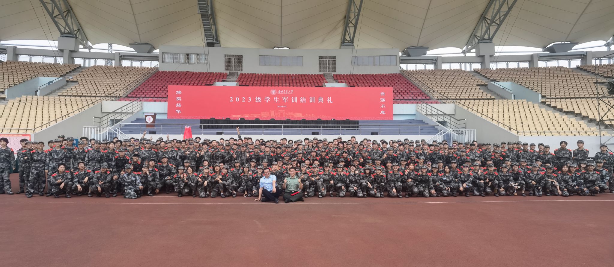 2023年9月17日上午8时,西南交通大学2023级本科生军训结业典礼在犀浦校区北区体育场隆重举行,为期14天的军训工作落下帷幕。